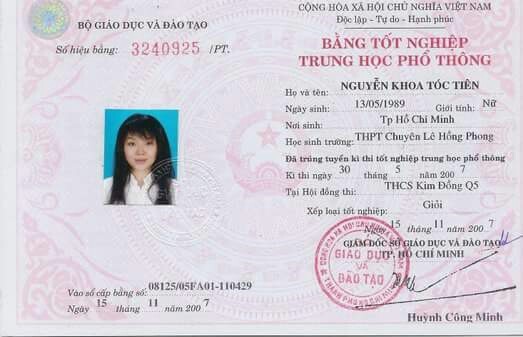 Bằng THPT – Bằng Cấp 3 được làm từ phôi thật, tem thật của các trường. Do vậy, chúng tôi đảm bảo chất lượng như bằng thật chất lượng chính xác 100%. Bao soi, bao công chứng trên toàn quốc